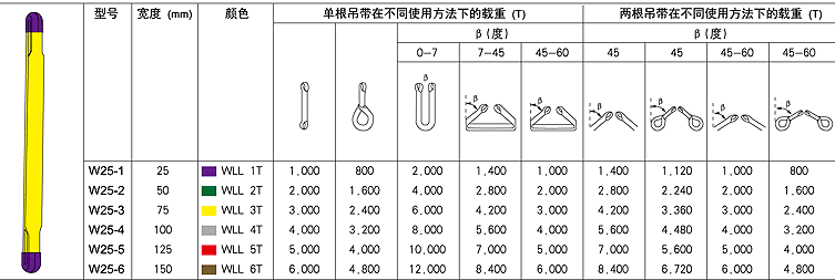 ◆可選用長度:1m,1.5m,2m,2.5m,3m,4m,5m,6m,7m,8m,10m,定購時請指明長度 吊帶使用安全注意事項 ※使用前應(yīng)認(rèn)真閱讀產(chǎn)品上的標(biāo)簽以及本頁說明,嚴(yán)格按照表格內(nèi)圖示使用方法的載重量進(jìn)行操作,嚴(yán)禁超※載使用,確保安全 ※嚴(yán)禁使用有破損、老化和有缺陷的吊帶 ※高腐蝕性的化學(xué)溶劑或高溫狀態(tài)都會損傷吊帶,并減弱吊帶的安全性能 ※盡可能平穩(wěn)和緩慢的起吊重物,防止猛然用力起吊 ※起吊帶有鋒利邊角的物體將有可能割斷吊帶,應(yīng)采用耐磨損襯墊保護(hù)吊帶 ※吊帶長時間不用時應(yīng)放置于干燥、陰暗的地方