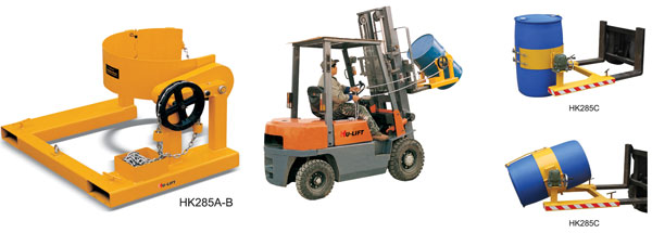 ● HK285A,HK285B駕駛員無需離開叉車,通過鏈條即可實現(xiàn)油桶的翻轉(zhuǎn),HK285C通過手搖實現(xiàn)油桶翻轉(zhuǎn)