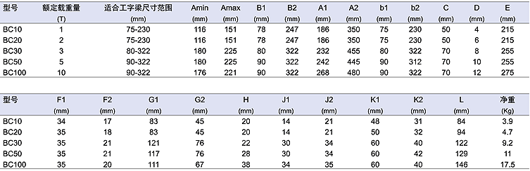 ● 工程力學優(yōu)化設(shè)計,增加載荷分布面積 ● 適用于各類工字梁 ● 符合美國ANSI/ASME安全標準