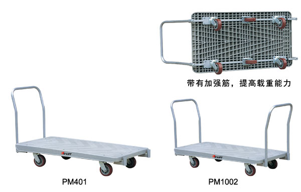 ● 塑料大臺面設(shè)計.底部帶有加強筋,載重能力強 ● 400Kg和1000Kg推車帶有兩個直輪,兩個萬向輪 ● 1500Kg推車帶有兩個直輪.四千萬向輪 ● 適用于倉庫、郵政,辦公樓等場所