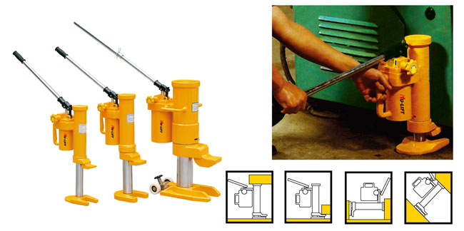 ● 獨(dú)有技術(shù)的高品質(zhì)油缸,結(jié)構(gòu)穩(wěn)定 ● 油缸可360°旋轉(zhuǎn),兩個(gè)工作面,可用于多種場合 ● 適用于大型設(shè)備的安裝起運(yùn),具有過載保護(hù)功能 ● 符合美國ASME/ANSI B 30.1.1986標(biāo)準(zhǔn),通過CE安全認(rèn)證 警告 為避免人身傷害或?qū)υO(shè)備的損害 ● 禁止超載使用 ● 禁止在已被提升的載荷上增加新的載荷 ● 禁止在不穩(wěn)定或危險(xiǎn)的位置上使用 ● 必須在平坦的并且可支撐載荷的表面使用千斤頂 ● 載荷必須在提升過程中保持穩(wěn)定 ● 不穩(wěn)定的載荷可能導(dǎo)致千斤頂傾倒 ● 禁止使用已損壞的、不合格的或老化的千斤頂 ● 禁止提升人,當(dāng)千斤頂載荷上有人時(shí)禁止提升 ● 禁止利用趾形支撐的末端提升載荷時(shí);必須讓趾形支撐完全與載荷接觸