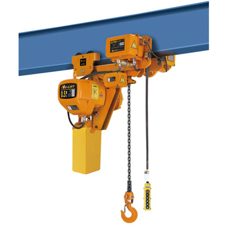 ● 超低空設(shè)計(jì),加大有效提升高度 ● 鏈條在鏈輪中運(yùn)行,不易脫落或跳槽,使用更加穩(wěn)固 ● 葫蘆標(biāo)配為單速,有雙速可定制 ● 標(biāo)準(zhǔn)起升高度為3米,其它高度可定制 ● 標(biāo)準(zhǔn)電源為3相、380V、50Hz,其它電壓可定制 ● 另有7.5T、10T可定制